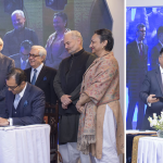 Mr. Ali Sarfraz Hussain, CEO Karandaaz Pakistan, Mr. Qazi Azmat Isa, CEO PPAF and Dr. Parvaiz Naim, Senior Sector Coordinator, KFW signing agreement to set up Pakistan Microfinance Investment Company in the presence of Mr. Mohammad Ishaq Dar, Honorable Minister for Finance, Revenue, Economic Affairs, Statistics and Privatization and Dr. Ishrat Husain, Chairman of the Board of Directors Karandaaz and Former Governor SBP.